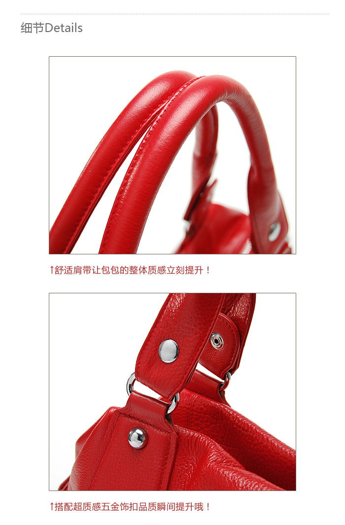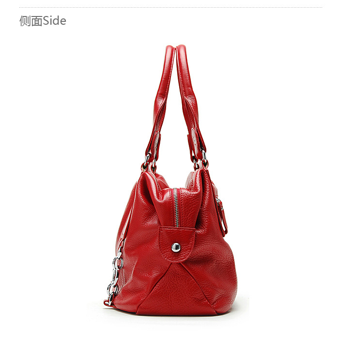 WOWO~Genuine Leather Tote Shoulder Bag Handbag Red