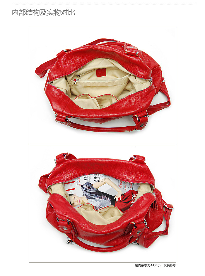 • INTERNAL STRUCTURE:1 outer pocket,1inside zipper bag, 1 zipper mezzanine,1 inside bag,1 cell phone pocket,1 document pocket.