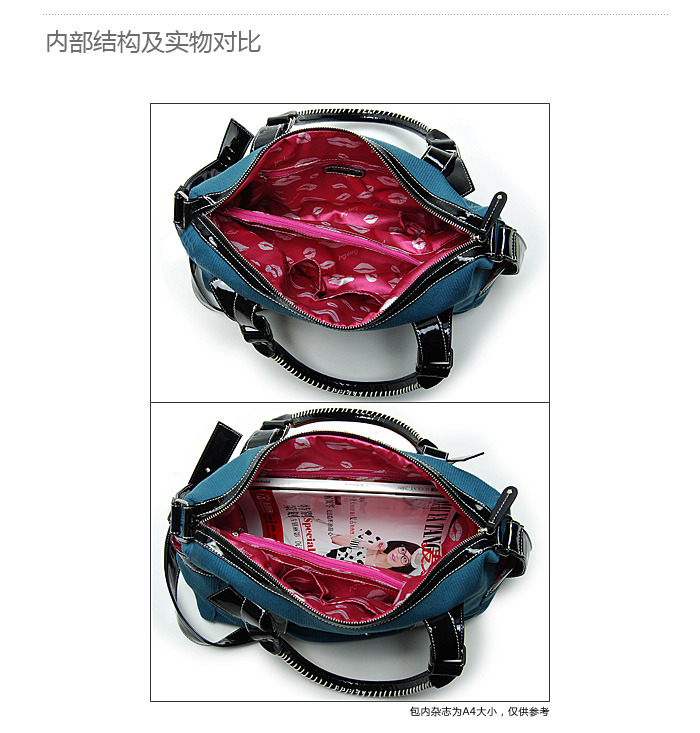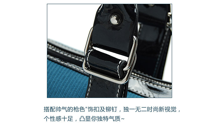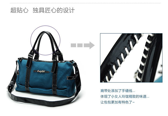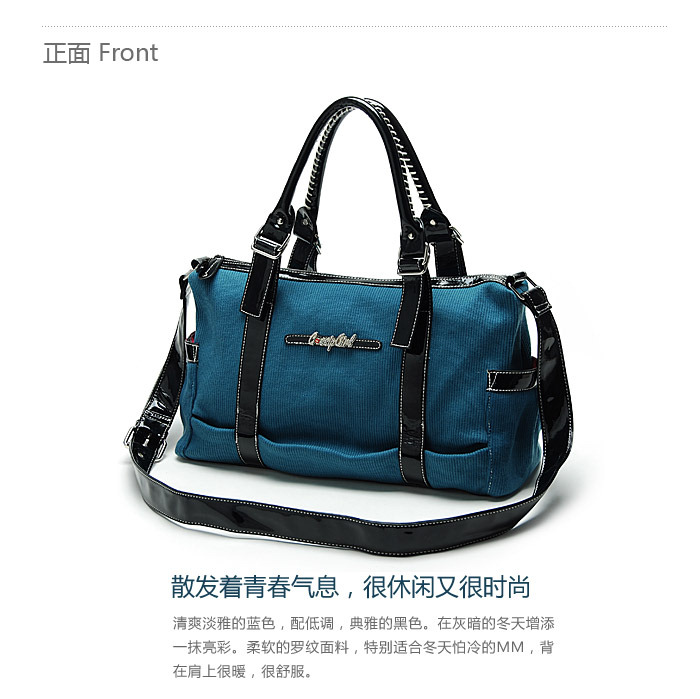 WOWO~Handbag Shoulder Bag Leather Blue Ribs