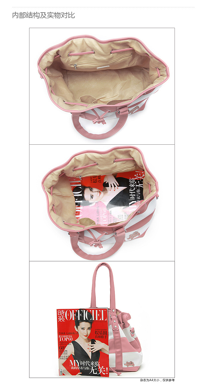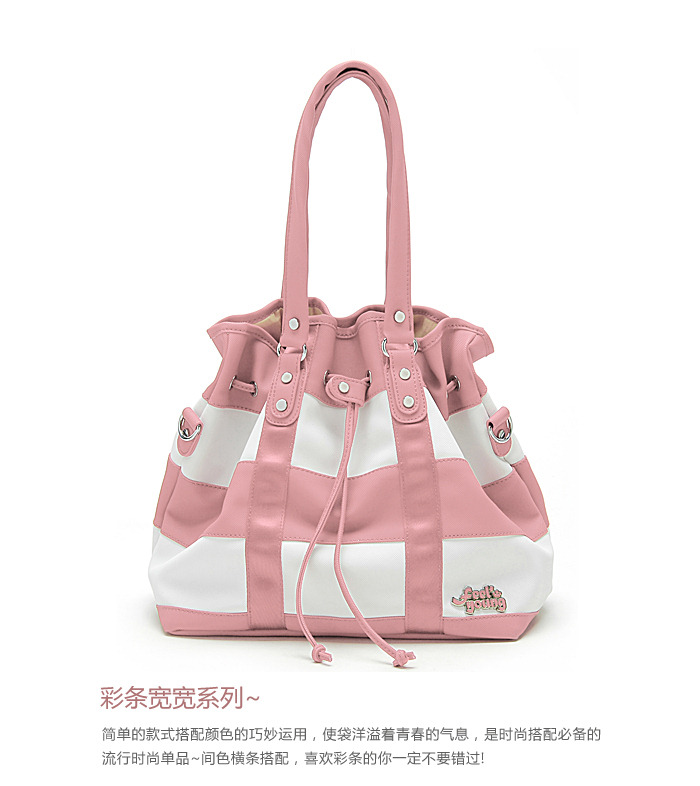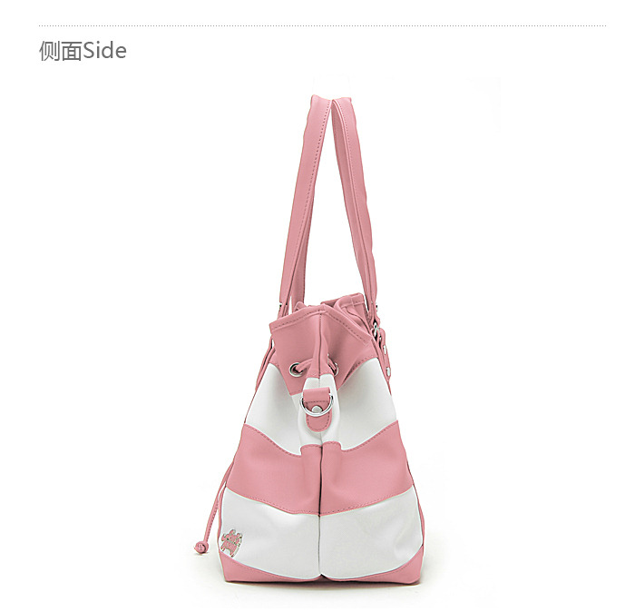WOWO~Leather Tote Shoulder Bag Handbag Pink&White