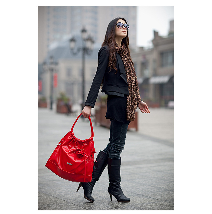 WOWO~Women leather Shoulder Handbag Bag Purse tote red