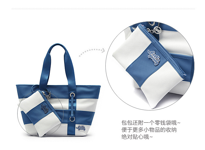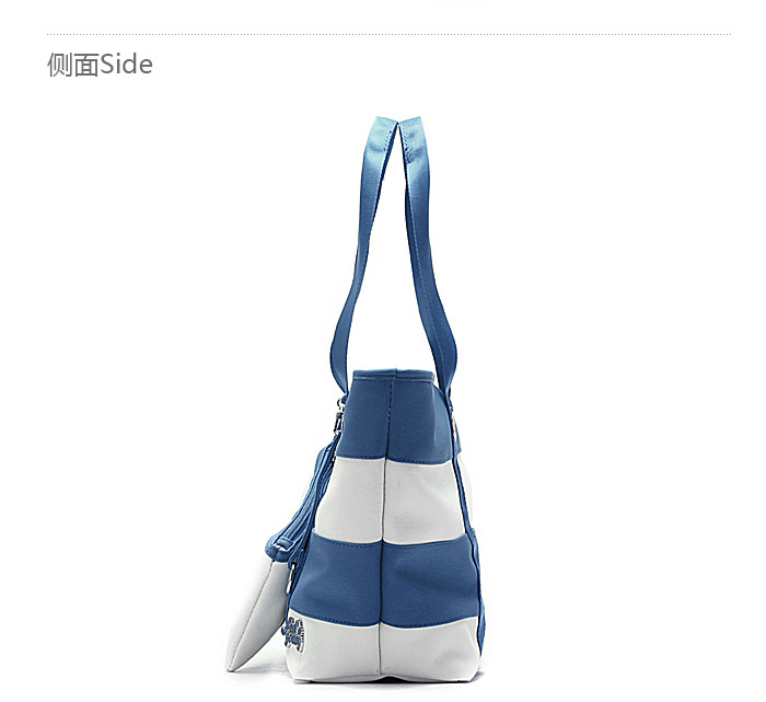 WOWO~Women Leather Tote Shoulder Bag Handbag Blue&White