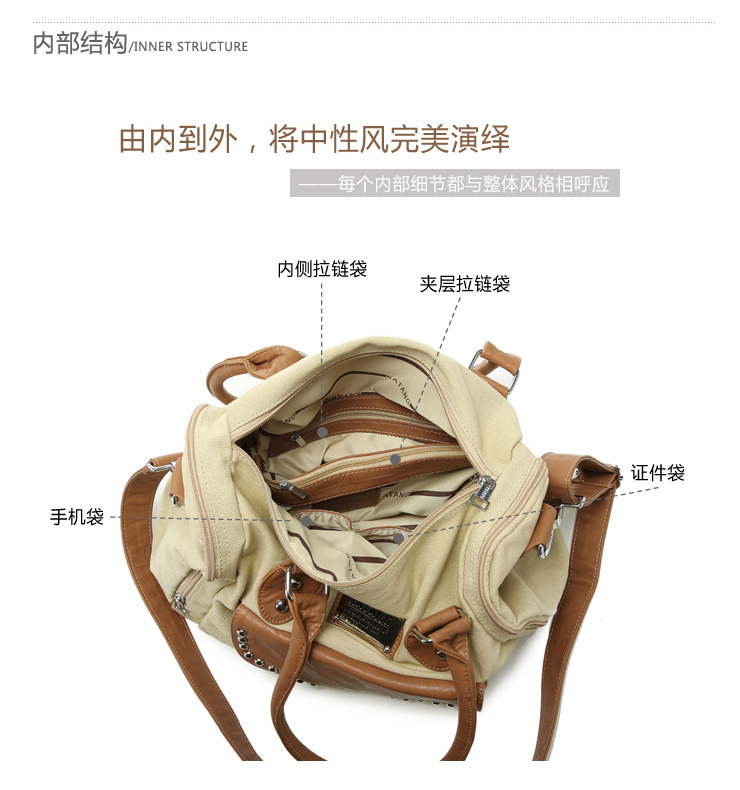• INTERNAL STRUCTURE:3 outer pocket,1 inside zipper bag, 1 inside zipper mezzanine,2 inside bag,1 key chain.