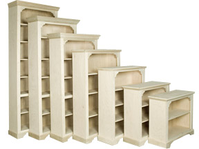 Our solid pine, maple and oak bookcases are offered in a variety of of styles and sizes to fit any room or budget. Pick from contemporary, traditional, vintage and shaker style (see below). Custom sizes are available and can be made into a complete wall system to give your home office a functional yet beautiful space to enhance your room’s décor. Custom finishing is available in either a stained or painted look.