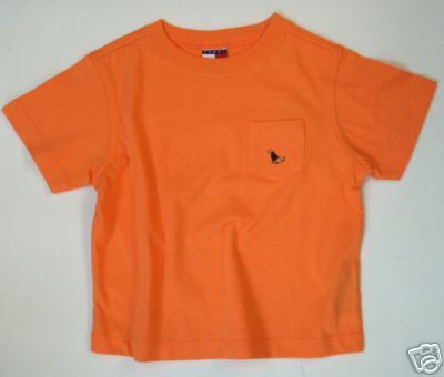 STYLING WITH A  RIBBED TRIM AT COLLAR AND A CHEST POCKET WITH A DOG  LOGO EMBROIDERED IN BLUE WITCH IS CONTRAST WELL WITH THE ORANGE T-SHIRT.