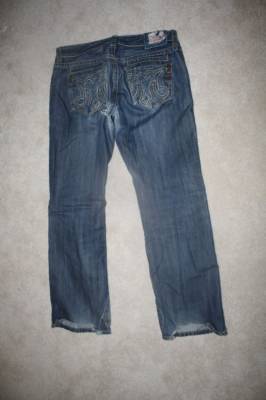 These are a used pair of men's MEK jeans size 36 x 34. Great shape, relaxed fit but some wear at the bottom back of the cuffs. There is a big M pattern on the back pockets. Sorry, don't really know the model#. There are several numbers under the tag: RN 117629, VM02VANC, H18...maybe one of these are it. There is a hole in the crotch which needs to be repaired....or you can leave it if you like it.