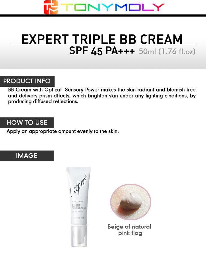 Tony Moly Expert triple BB cream SPF45 PA+++ is a Tri-functional BB Cream, providing Whitening, Wrinkle Care and Protection against UV rays.
