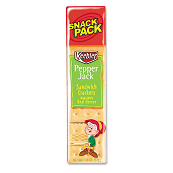 A snack can be the ideal solution to a busy day. These snacks come individually packaged--meaning you can take them with you when you're on the move! Eight crackers per pack. Food Type: Crackers; Flavor: Pepper Jack Cheese; Capacity (Weight): 1.800 oz; Capacity (Volume): N/A.