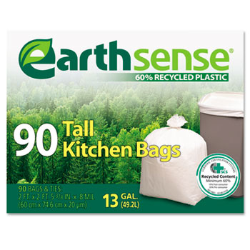 Recycled Can Liners 13gal .7 mil 23.5 x 29.75 White 90 Bags/Box