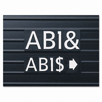 Create easy-to-read messages using reliable raised white lettering. Secure letters evenly and straightly with molded grooves on the back of each letter. M Series for boards with steel surface Character Types: Letters; Numbers; Symbols; Mounting Type: Magnetic; Character Style: Helvetica; Character Color: White.