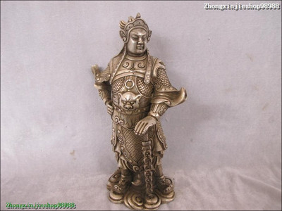 China Folk Classical Silver carved Wei Tuo warrior God Statue