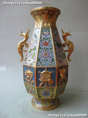 Royal 100% Pure bronze Cloisonne 24K Gold Dragon Eight treasures Crock Pot Vase