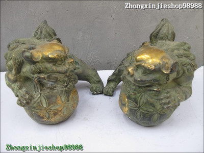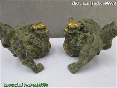 Chinese Folk Feng Shui Bronze Dragon Foo Dog Lion Lucky statue
