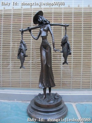 Scripture pure Bonze Marble statue art Girls on the beach fishing sculpture