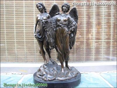 Western Bronze & Marble Art Greek Myth Angel with wings sculpture