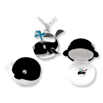 Whale Animal Necklace in Whale Box Its a Jungle Out There...Be a Part of it Unique and Fun Animal Pendants in the Most Adorable Velour Boxes Comes with Sterling Silver or 18 kt Gold Finish Make Sure You Check Out the Other 25 Animal Necklaces Lead and Cadmium Safe Case Pack 24 Please note: If there is a color/size/type option the option closest to the image will be shipped (Or you may receive a random color/size/type).