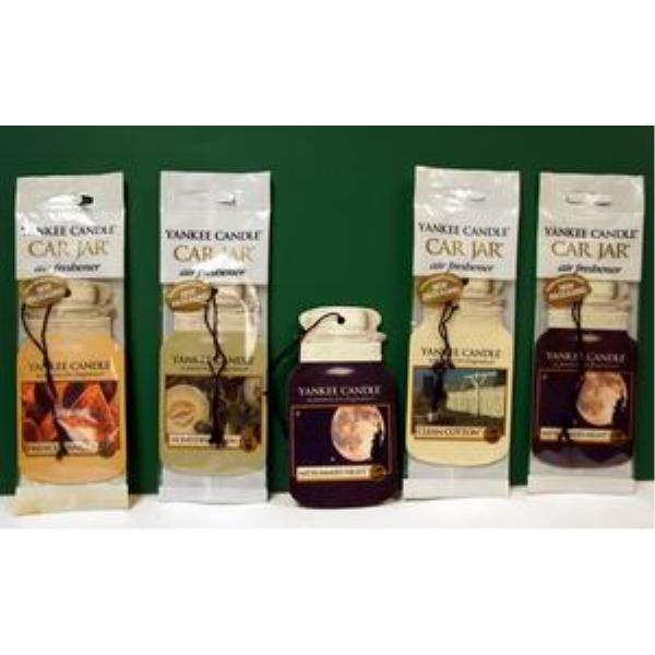 Assorted Yankee Candle Car Jar Hanging Air Fresheners Use this Yankee Candle Car Jar air freshener to fill your car RV closet locker boat tent and many other spaces with great Yankee scent. Comes in Clean Cotton Midsummers Night Honeydew Melon and French Vanilla but can not guarantee how many of each scent you will receive with your order. Comes individually packaged and UPC coded."" Case Pack 72 Please note: If there is a color/size/type option the option closest to the image will be shipped (Or you may receive a random color/size/type).