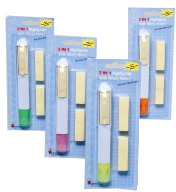 2 In 1 Highlight With Sticky Flag Note Holder. Plus 2 Extra Flag Notes. 4 Assorted Colors. Case Pack 72 Please note: If there is a color/size/type option the option closest to the image will be shipped (Or you may receive a random color/size/type).