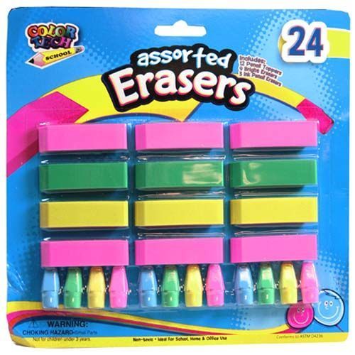 24Pc Assorted Eraser Set Case Pack 48 Please note: If there is a color/size/type option the option closest to the image will be shipped (Or you may receive a random color/size/type).