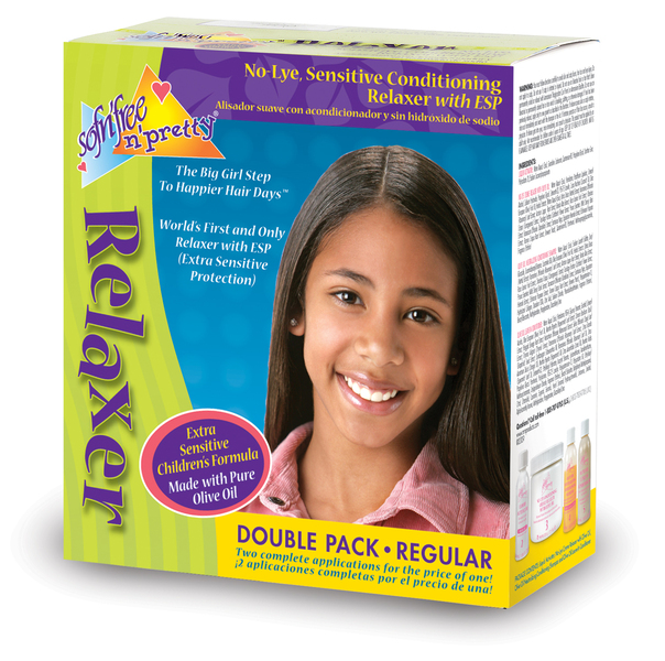 Sof N Pretty No Lye Sensitive Conditioning Relaxer Regular Double Pack. You already know how much happier your big girl will be with softer more manageable hair. You just don't know which relaxer to trust with her delicate hair and scalp. Well in this box is the world's first and only relaxer with Extra Sensitive Protection (ESP) a phenomenal conditioning system that uses a healthy dose of pure herbs proven to protect young hair before during and after relaxing. She'll get tons of new manageability and shine without one ounce of damage. Guaranteed. So relax. And be happy. 1 count."" Case Pack 6 Please note: If there is a color/size/type option the option closest to the image will be shipped (Or you may receive a random color/size/type).