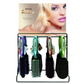 Viva Brilliance Hairbrushes in metal display rack. Assorted styles. Case Pack 144 Please note: If there is a color/size/type option the option closest to the image will be shipped (Or you may receive a random color/size/type).