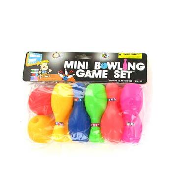 A small set of 10 plastic pins 2 of each color blue green orange pink and yellow and a pair of plastic balls each with 3 finger holes. The balls are 2 1/2"""" diameter and the pins are 3 1/8"""" tall with a 7/8"""" base. For ages 3 years and up the set comes in a poly bag with header card and UPC code."" Case Pack 48 Please note: If there is a color/size/type option the option closest to the image will be shipped (Or you may receive a random color/size/type).